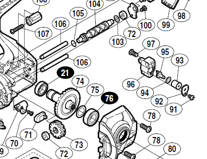 ピニオンギアベアリングのサイズはDDL-1470ZZ。